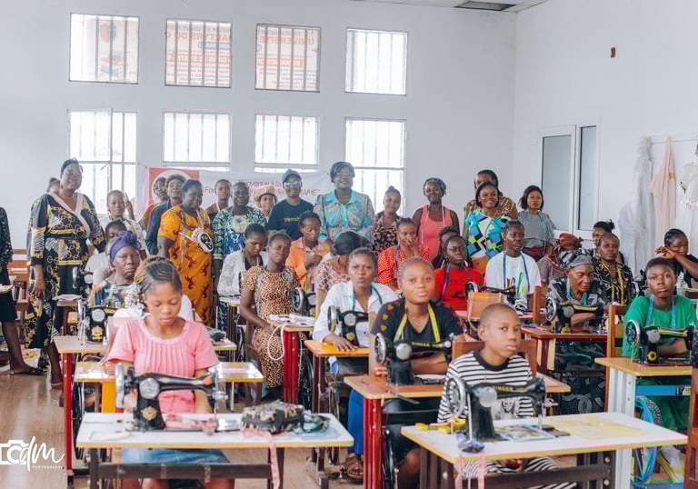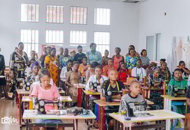 Notre mission est l’éveil des consciences, le renforcement des capacités professionnelles et la promotion de l’entrepreneuriat, en vue d’une réalisation effective de l’autonomisation des femmes et des jeunes filles en milieu rural et péri‑urbain.